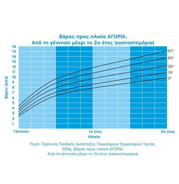 Επειδή τα αγόρια και τα κορίτσια αναπτύσσονται με διαφορετικούς ρυθμούς, υπάρχουν χωριστά διαγράμματα ανάπτυξης για αγόρια και για κορίτσια. Όταν κοιτάζετε ένα διάγραμμα, πρέπει να εστιάζετε στον ρυθμό ανάπτυξης του παιδιού σας όσο μεγαλώνει. Πέντε μετρήσεις μέσα σε ένα χρονικό διάστημα είναι, συνεπώς, πολύ πιο χρήσιμες από μόνο μία, καθώς δείχνουν τον ρυθμό με τον οποίο αναπτύσσεται το μωρό σου σε σχέση με τις καμπύλες του διαγράμματος. Η ανάπτυξη δεν είναι όπως οι βαθμοί στο σχολείο—ο στόχος δεν είναι να πάρεις Α με τέλειο σκορ!