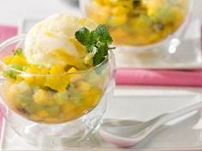 Μινεστρόνε φρούτων με θυμάρι και μοσχολέμονο