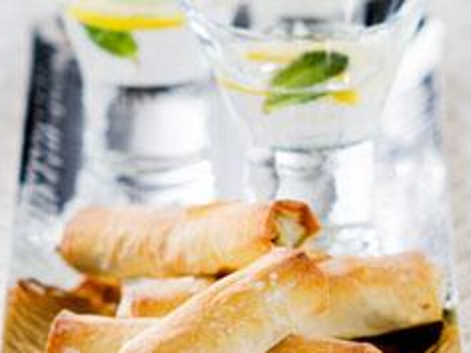 Κόψε κάθε φύλλο κρούστας στα 3 κατά πλάτος και στη συνέχεια στα 2, ώστε να σχηματιστούν 6 ορθογώνια σε κάθε φύλλο. Στο κάτω μέρος κάθε ορθογωνίου, βάλε μία κουταλιά σούπας λαχανικών. Κλείσε όλες τις πλευρές και στη συνέχεια τύλιξε το φύλλο έτσι ώστε να δημιουργηθούν μικρά πούρα. Άπλωσε στο ταψί του φούρνου αντικολλητικό χαρτί, τοποθέτησε επάνω τα ρολάκια και ψήσε τα αμέσως. Άφησε τα να ψηθούν για περίπου 7 λεπτά, έως ότου ροδίσουν καλά.